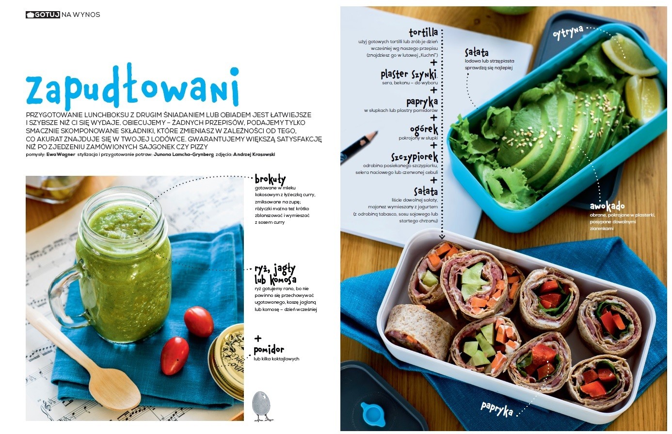 Nowością będzie też dział poświęcony prostym posiłkom do pracy i do szkoły, które zachwycą wszystkich ceniących smak i wygodę. Nie będą to przepisy, a jedynie przykłady smacznie skomponowanych składników, które można zmieniać w zależności od tego, co znajduje się w lodówce. W najnowszym wydaniu miesięcznika pomysły zostały zaprezentowane w efektownych lunchboksach.